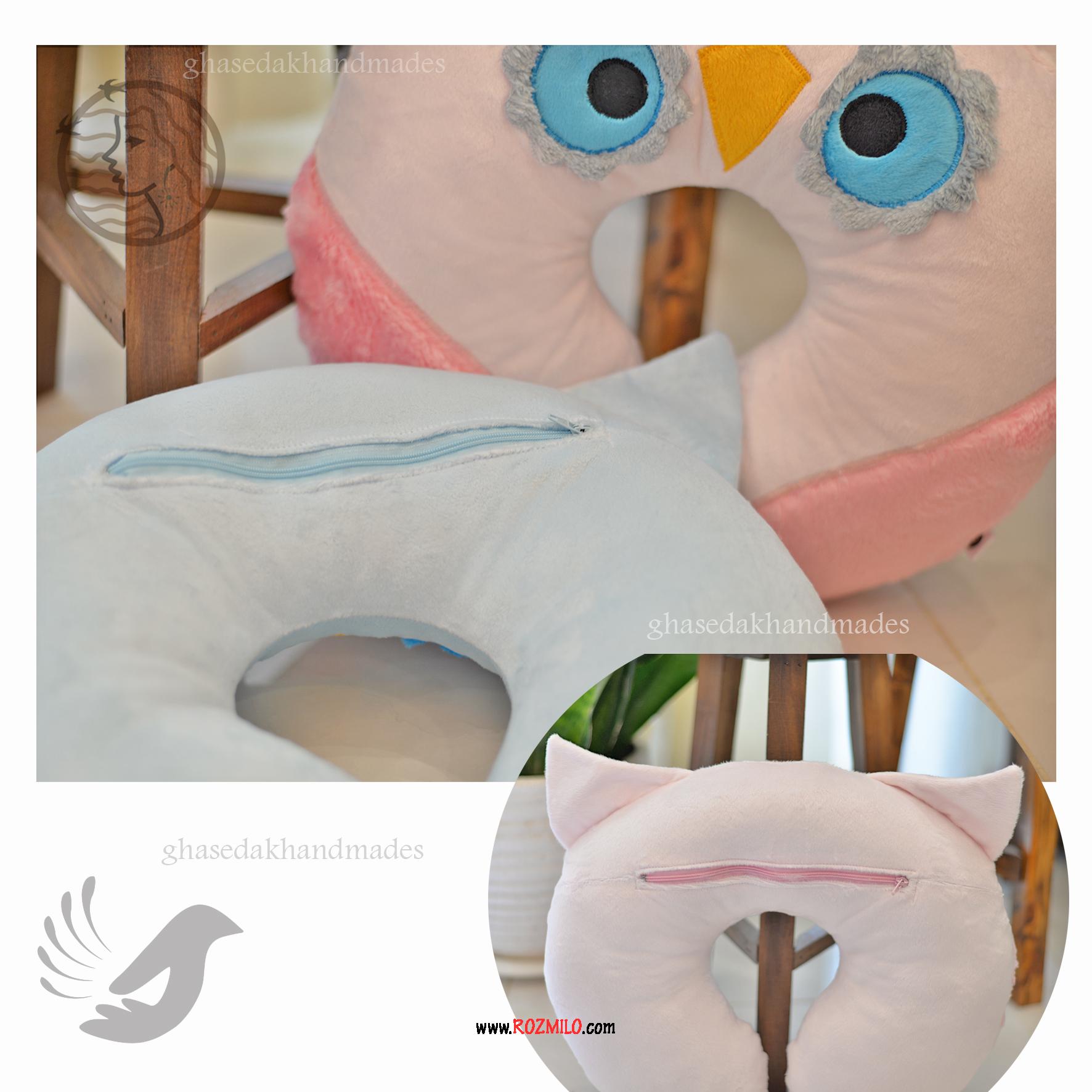 بالش دورگردنی پولیشی عروسکی گلدوزی شده با 2 رنگ