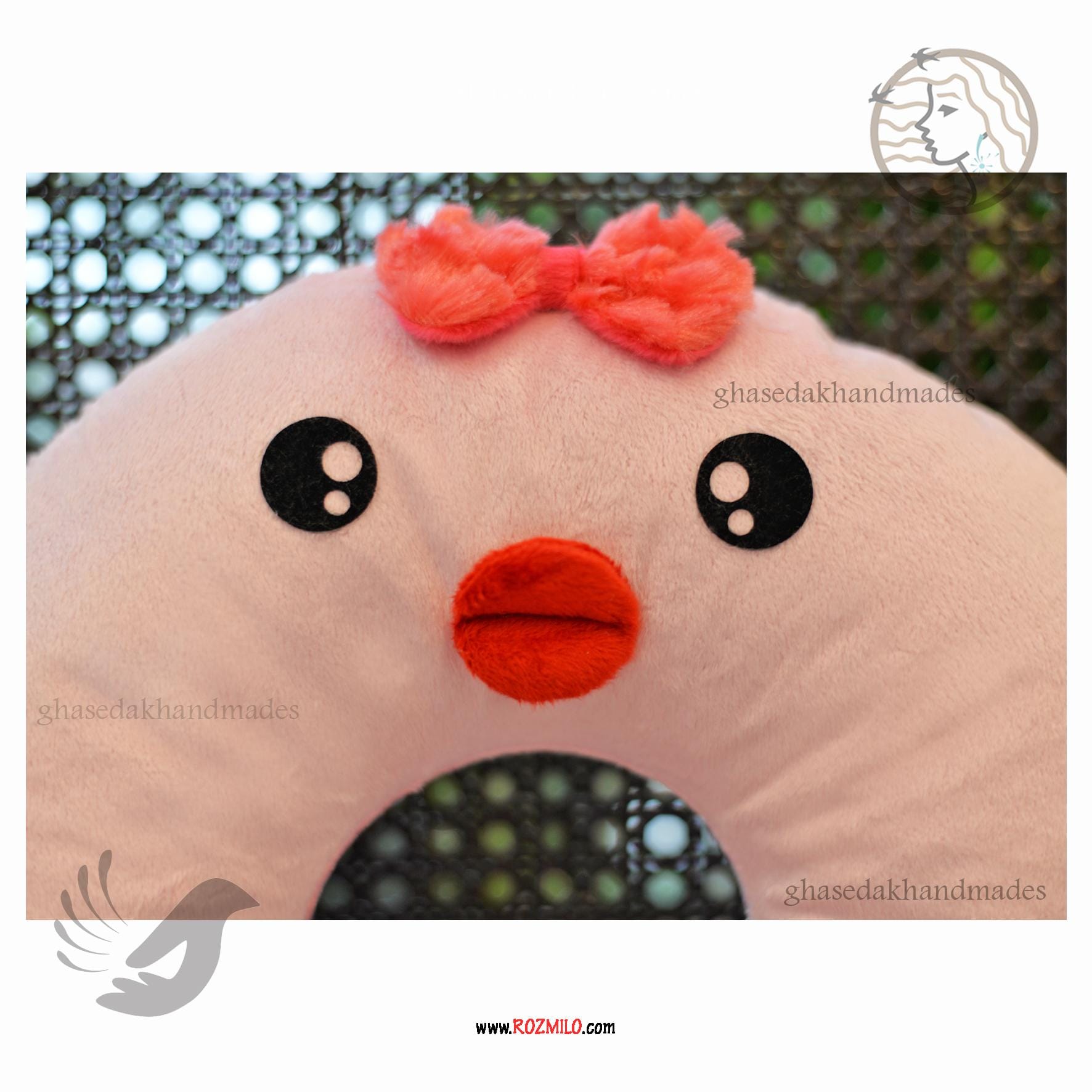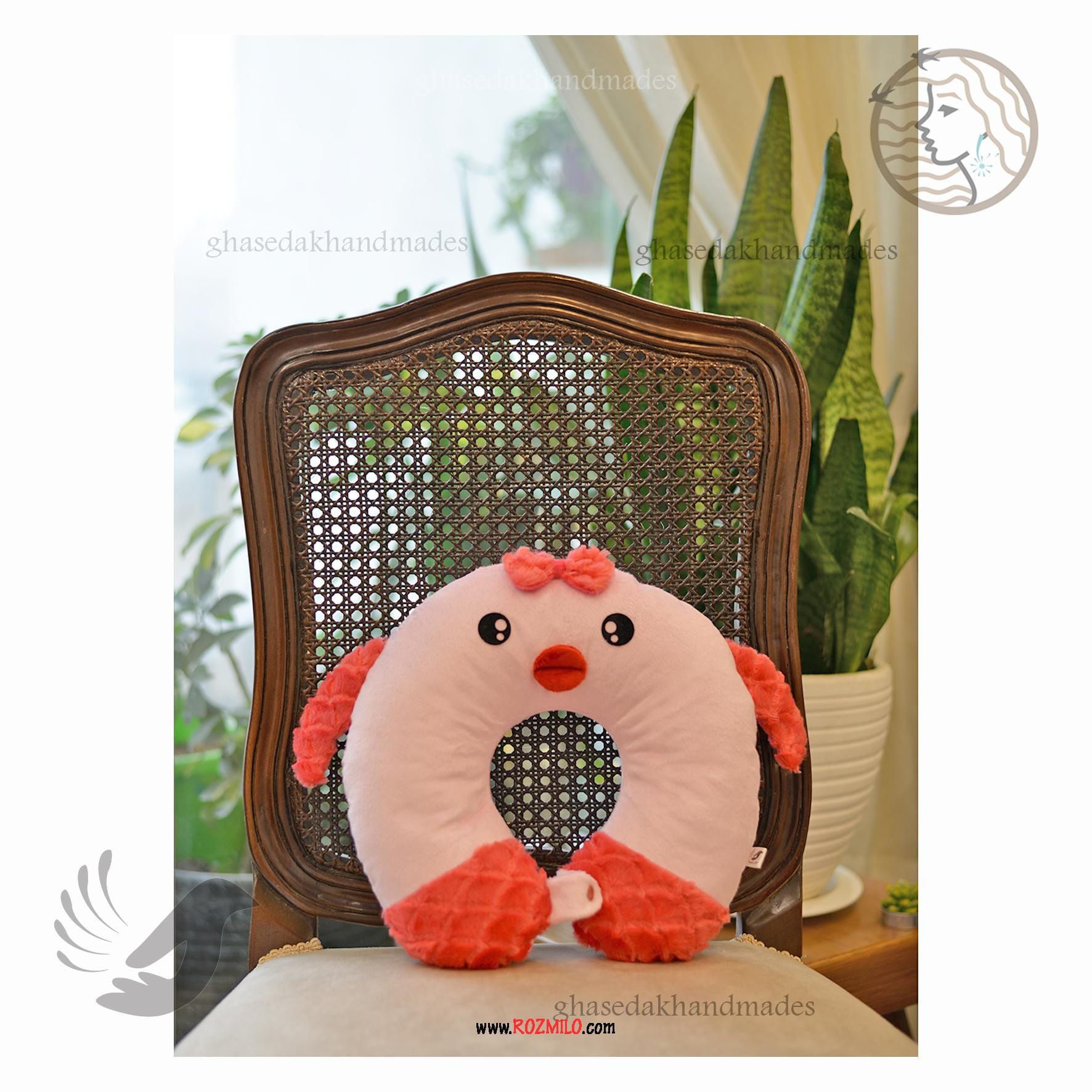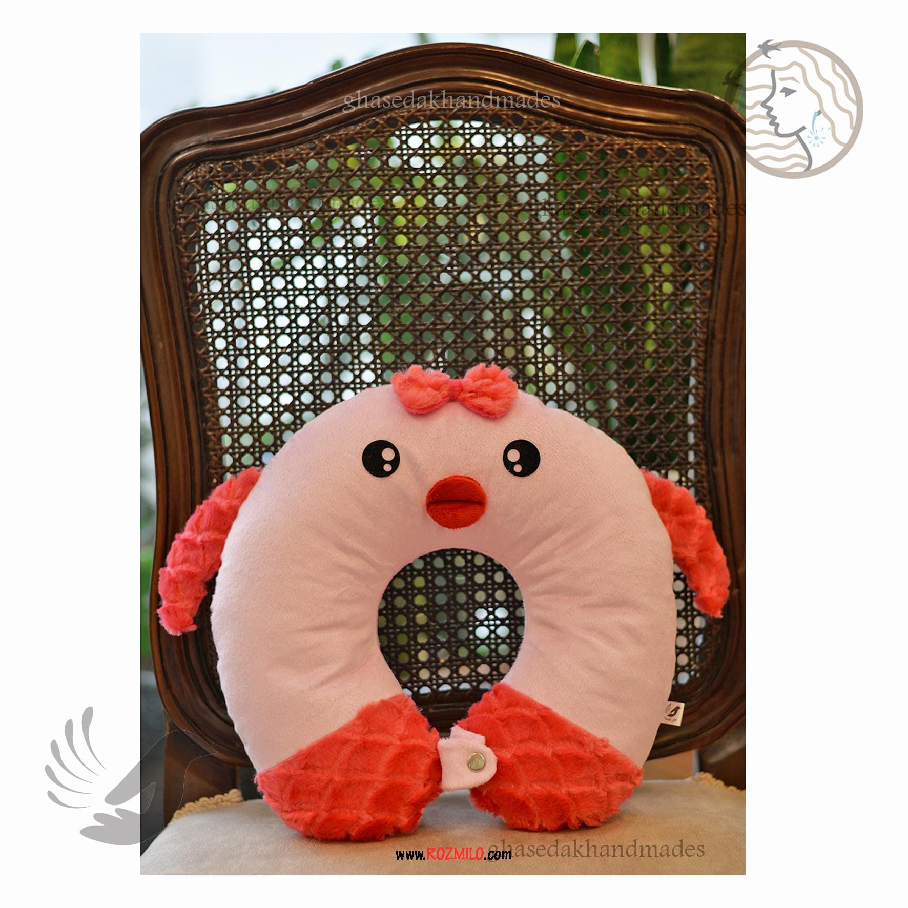 بالش دورگردنی پولیشی عروسکی گلدوزی شده با پارچه مخمل و پولیش