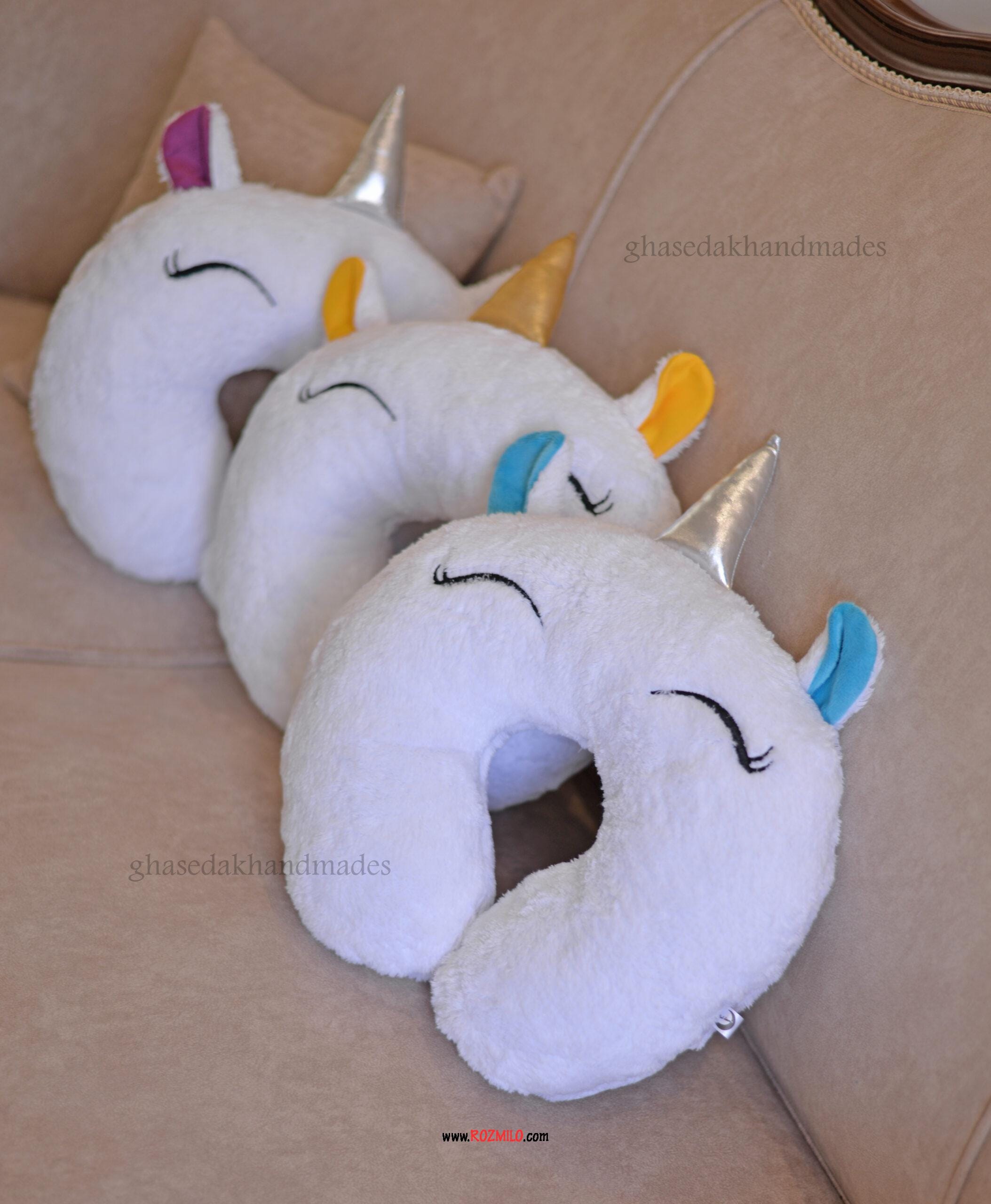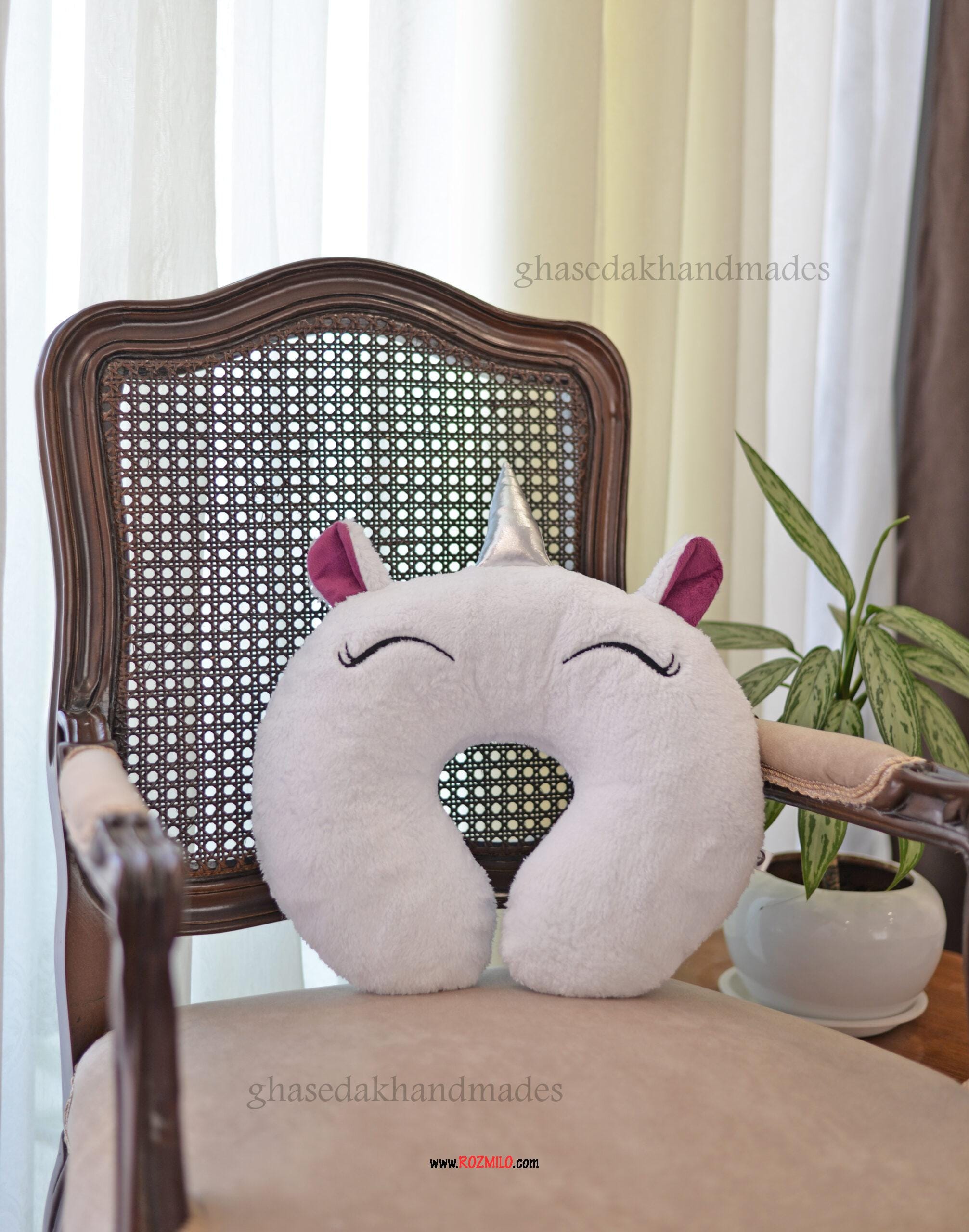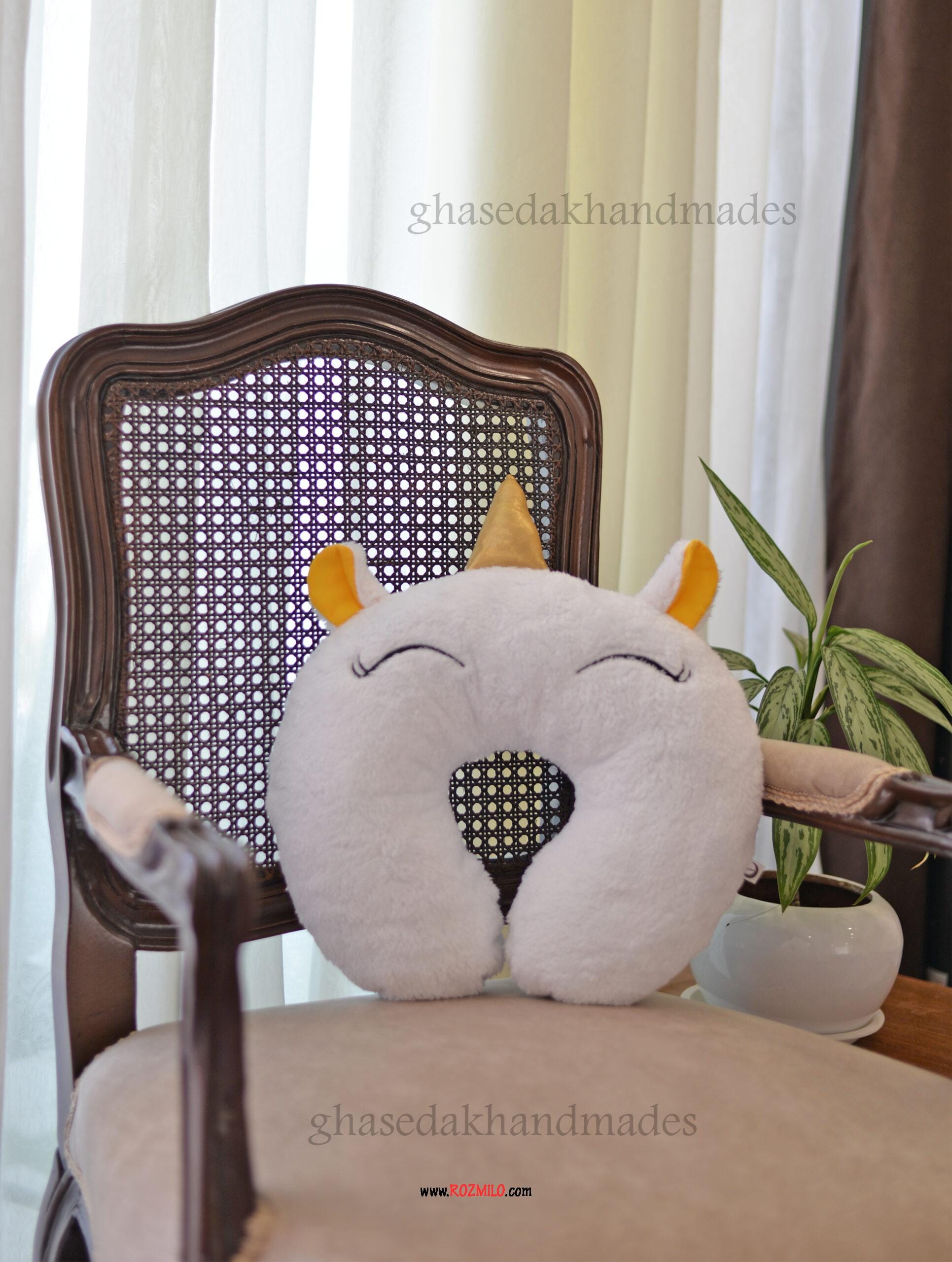 توضیحات کلی بالشت دور گردنی فانتزی طرح تکشاخ سفید