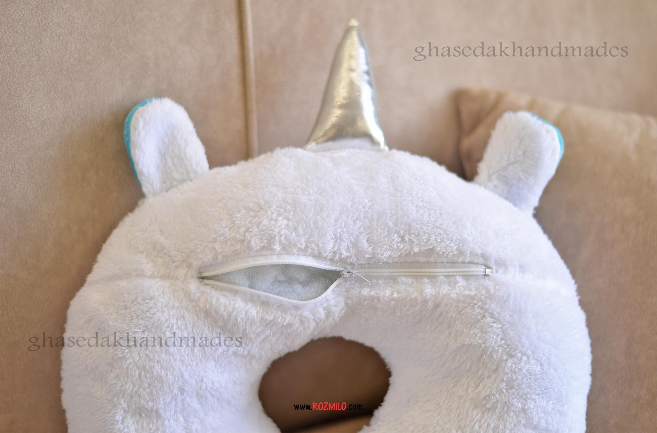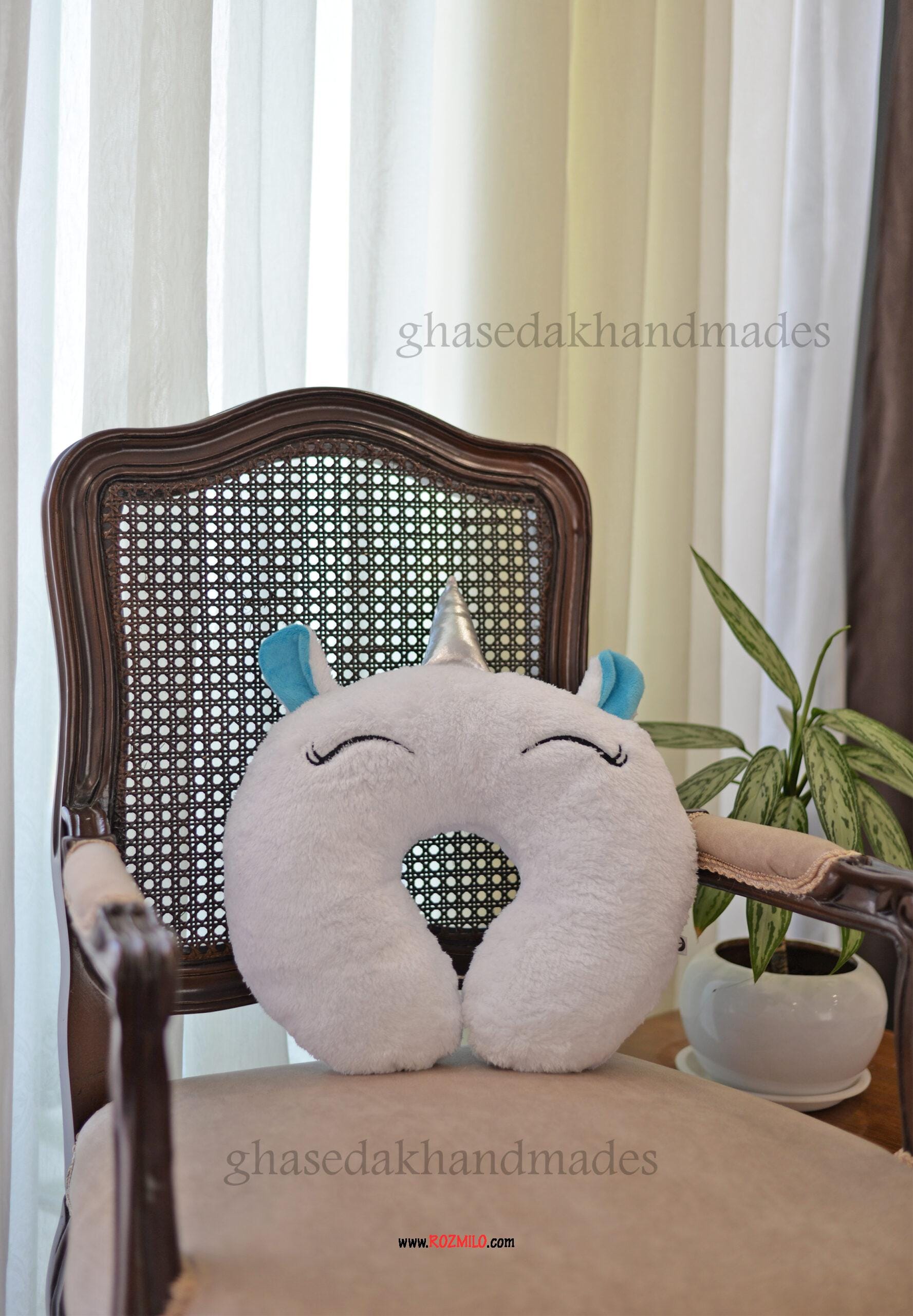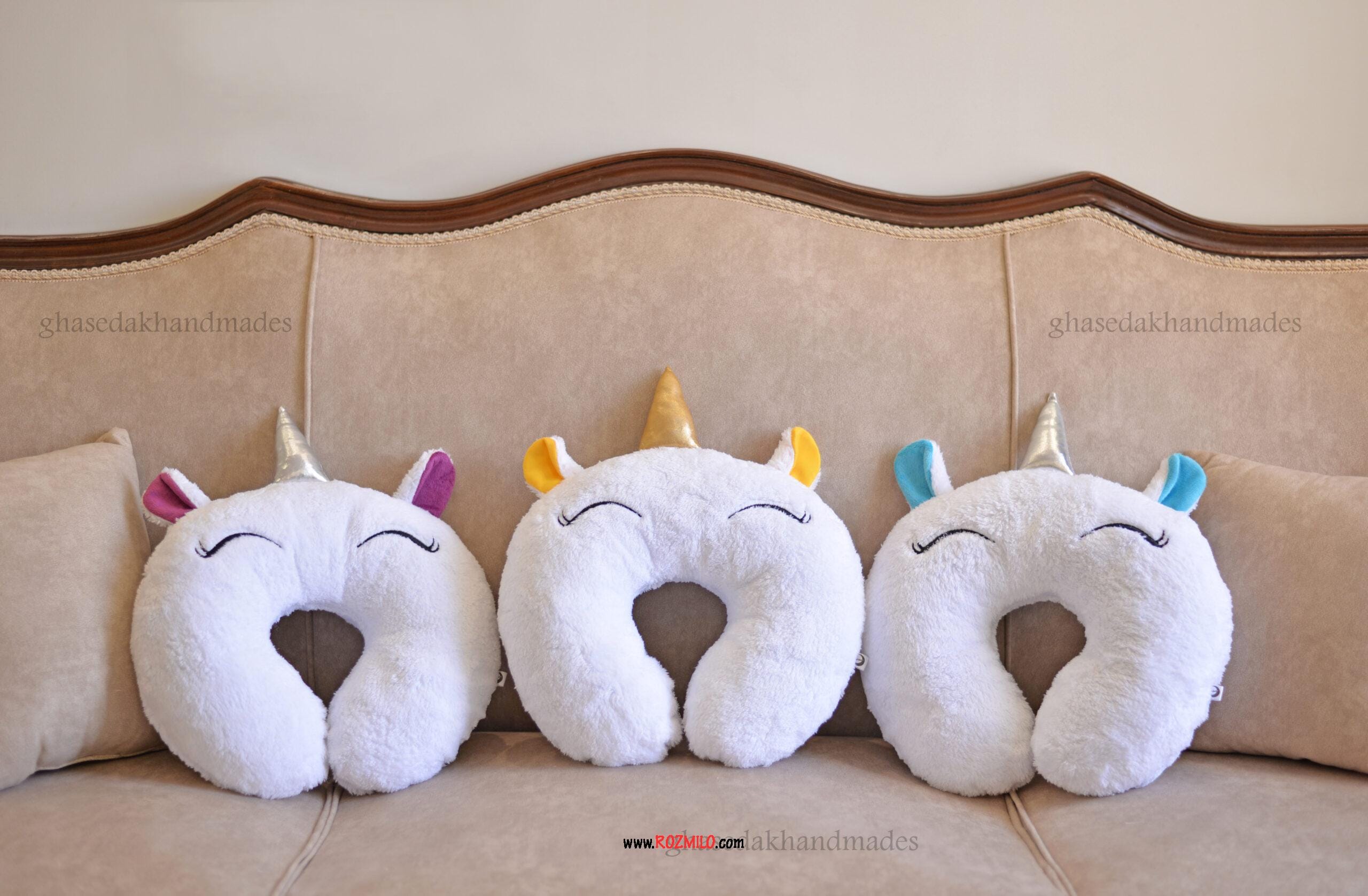 توضیحات کلی بالشت دور گردنی فانتزی طرح تکشاخ سفید