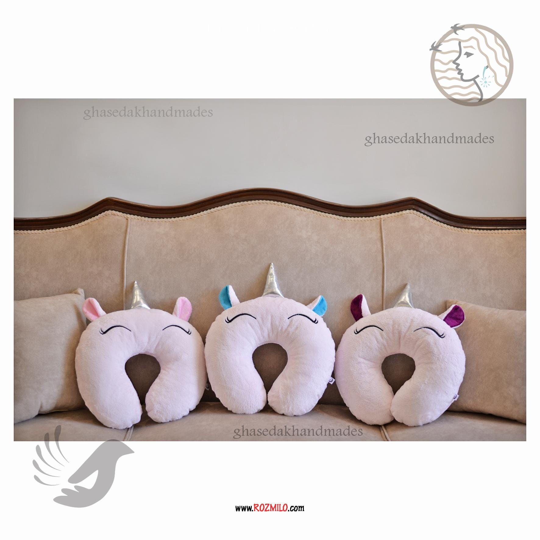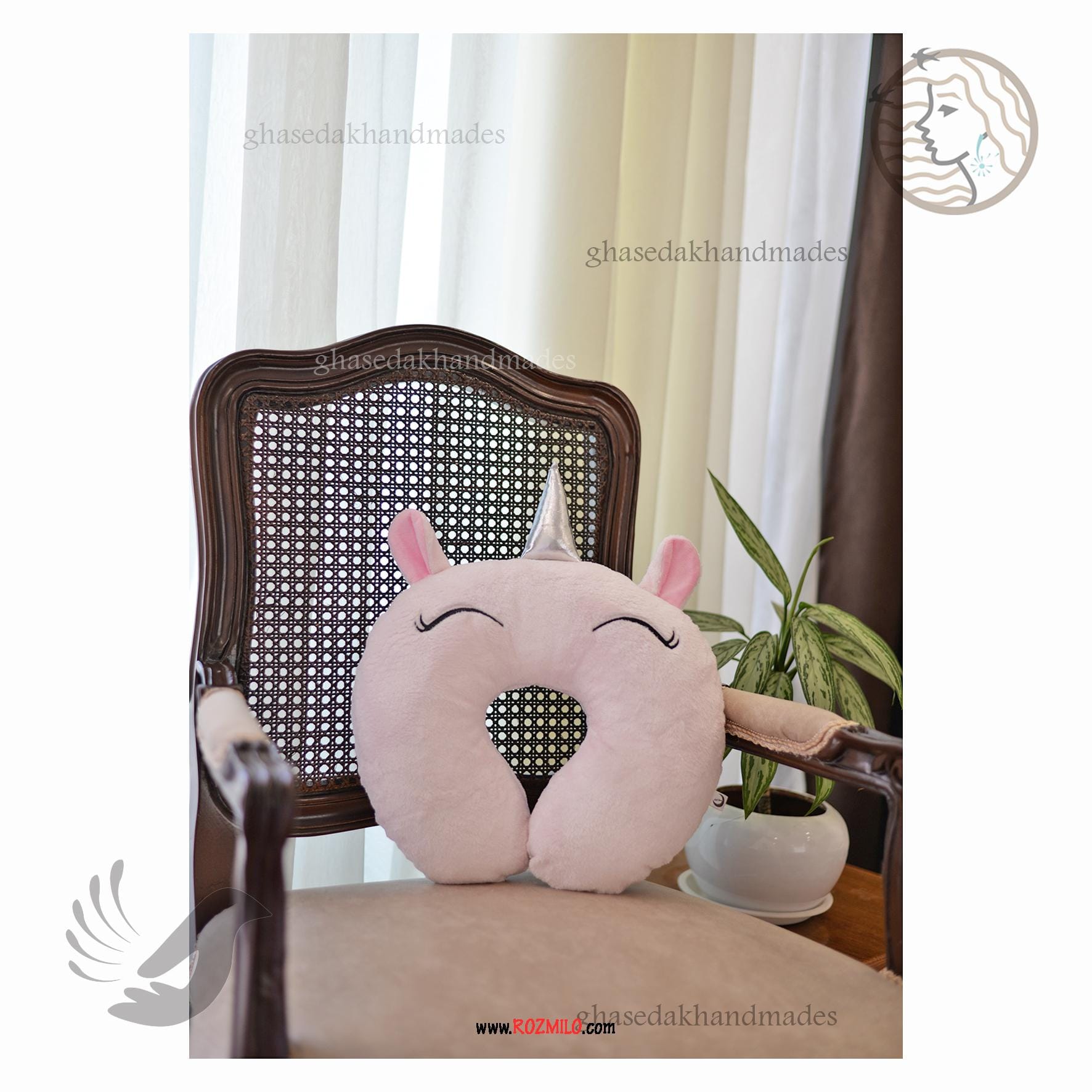 توضیحات کلی بالشت دور گردنی فانتزی طرح تکشاخ صورتی