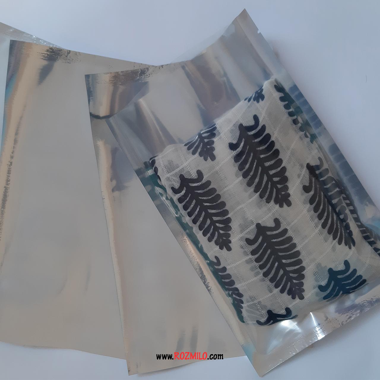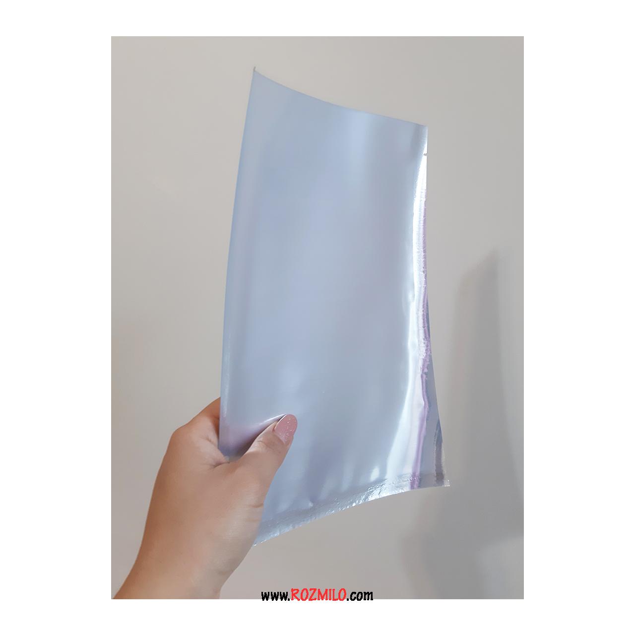 پاکت پلاستیکی دو رو یک رو شفاف یک رو آلومینیوم مناسب پرس کردن با دستگاه پرس و بسته بندی فوق لاکچری برای هدیه ها و کالاها در اندازه 20 در 30 سانتی متر
